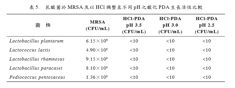 乳酸菌活性,但還是有耐酸特性較強的乳酸 菌無法被抑制,故以 pH 3.8之酸化 PDA 不 足以客觀表現(xiàn)乳酸活菌產(chǎn)品之衛(wèi)生檢測結(jié)果。