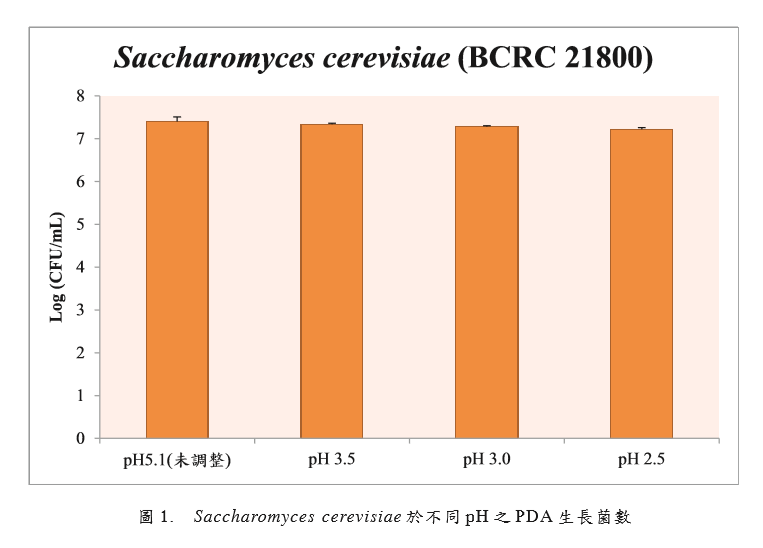 產(chǎn)生而誤判檢測結(jié)果。本研究以酸液調(diào)整PDA之pH值使乳酸菌在酸化PDA中不生長,而維持霉菌及酵母 菌之生長活性。研究結(jié)果顯示在pH 2.5~3.5環(huán)境下,乳酸菌在PDA無法生長,但霉菌及酵母菌不受低pH 環(huán)境影響,因此吾等認為利用酸化PDA檢測乳酸菌食品中的霉菌及酵母菌將更為準確。