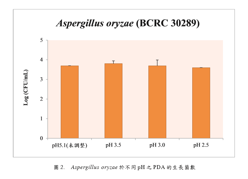 低其偽陽性而更加準確。本研究使用一株酵 母及一株霉菌做為測試基準,未來將進一步 測試多種真菌于酸化PDA生長情形,以確認